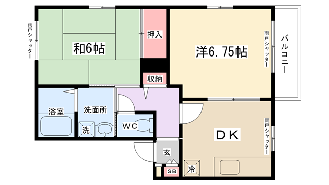 | 間取り内訳 | DK5.5帖・洋室6.75帖・和室6帖 | 駐車場 | 敷地内あり 5,000円 | ||||