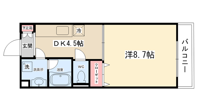 | 間取り内訳 | 洋室8.7帖・DK4.5帖 | 駐車場 | 敷地内あり 10,000円 | ||||