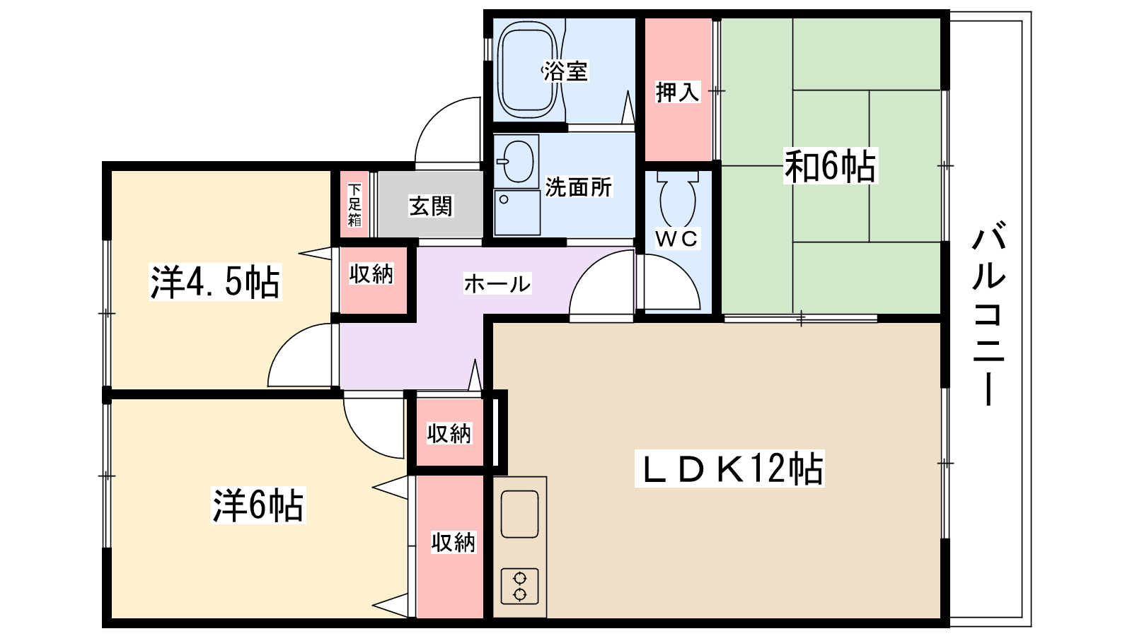 | 間取り内訳 | DK12帖・洋室6帖・洋室4.5帖・和室6帖 | 駐車場 | 敷地内あり 5,500円 | ||||