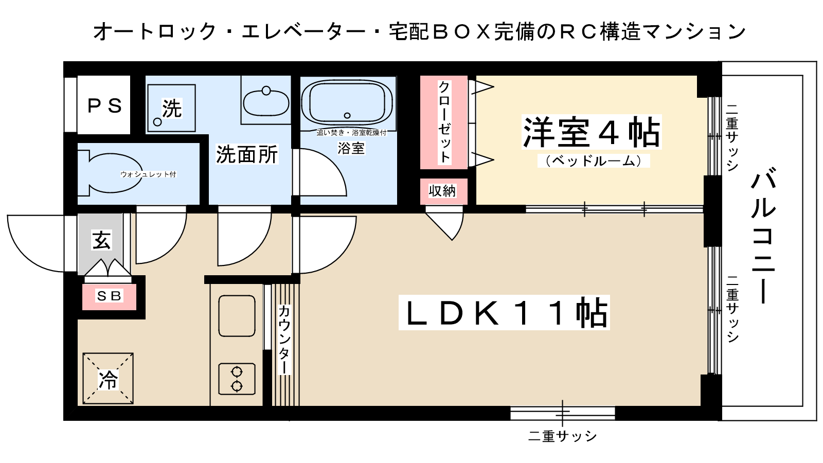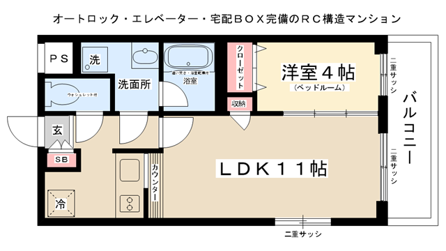 最上階・角部屋 インターネット無料(J:COM120M) オートロック 宅配ボックス 二重サッシ 2口コンロ付システムキッチン シューズボックス 敷地内ゴミ置場
