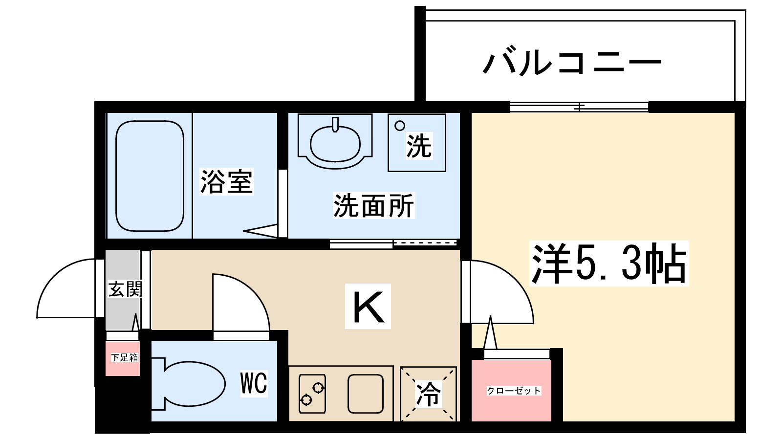 | 間取り内訳 | 洋室5.3帖 | 駐車場 | なし | ||||