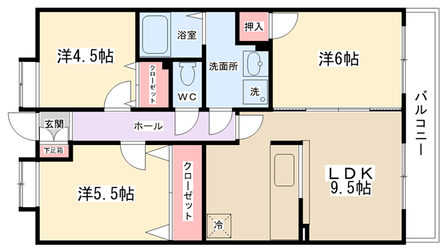 | 間取り内訳 | LDK9.5帖・洋室6帖・洋室5.5帖・洋室4.5帖 | 駐車場 | 敷地内あり 8,800円 | ||||
