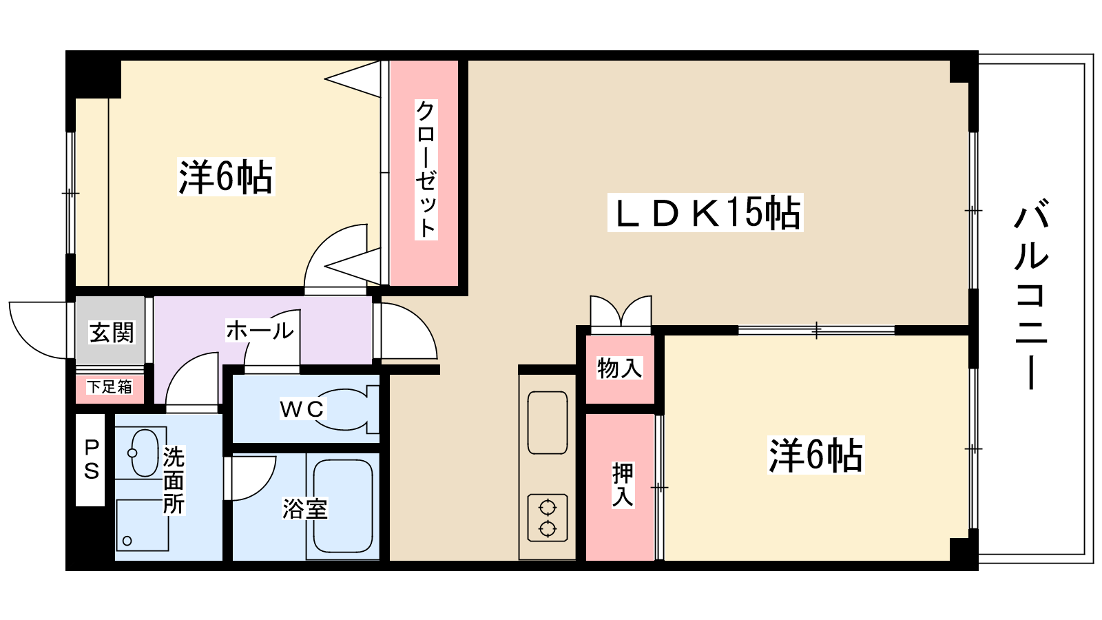 | 間取り内訳 | LDK15帖・洋室6帖・洋室6帖 | 駐車場 | 敷地内あり(1台分付き) | ||||