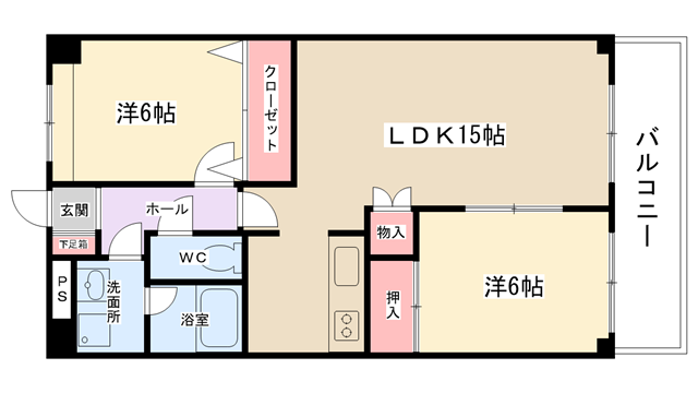 | 間取り | 2LDK | 専有面積 | 60.3㎡ | 構造 | RC | 築年数 | 平成9年2月 |