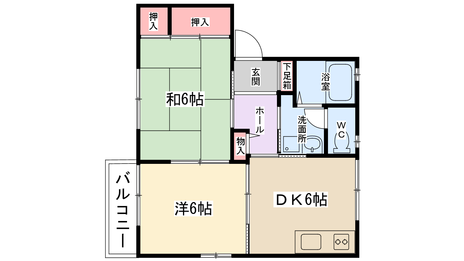 | 間取り内訳 | 洋室6帖・和室6帖・DK6帖 | 駐車場 | 敷地内あり 8,000円 | ||||