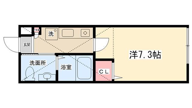 | 間取り内訳 | 洋室7.3帖・K2.1帖 | 駐車場 | なし | ||||