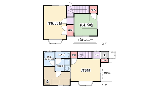 | 間取り内訳 | 洋室6帖・洋室6.75帖・和室4.5帖 | 駐車場 | 敷地内あり(1台分付き) | ||||