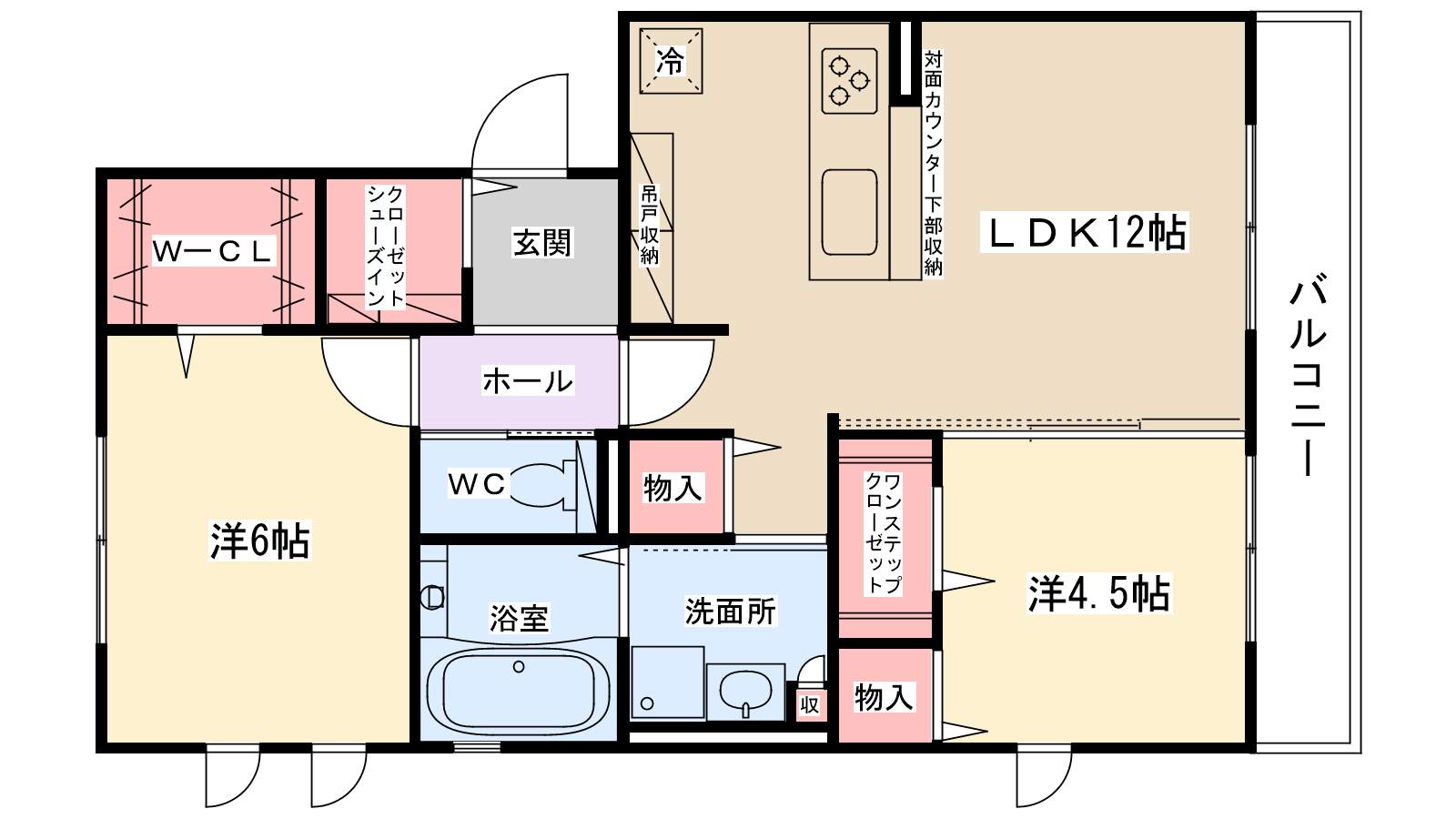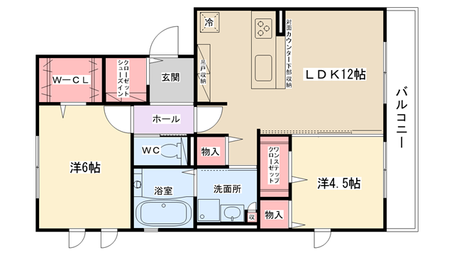 | 間取り内訳 | 洋室6帖・洋室4.5帖・LDK12帖 | 駐車場 | 敷地内あり 7,700円 | ||||