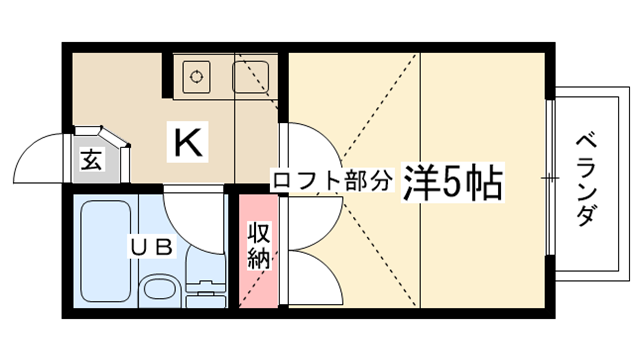 | 間取り | 1K | 専有面積 | 16.69㎡ | 構造 | 木造 | 築年数 | 平成3年4月 |